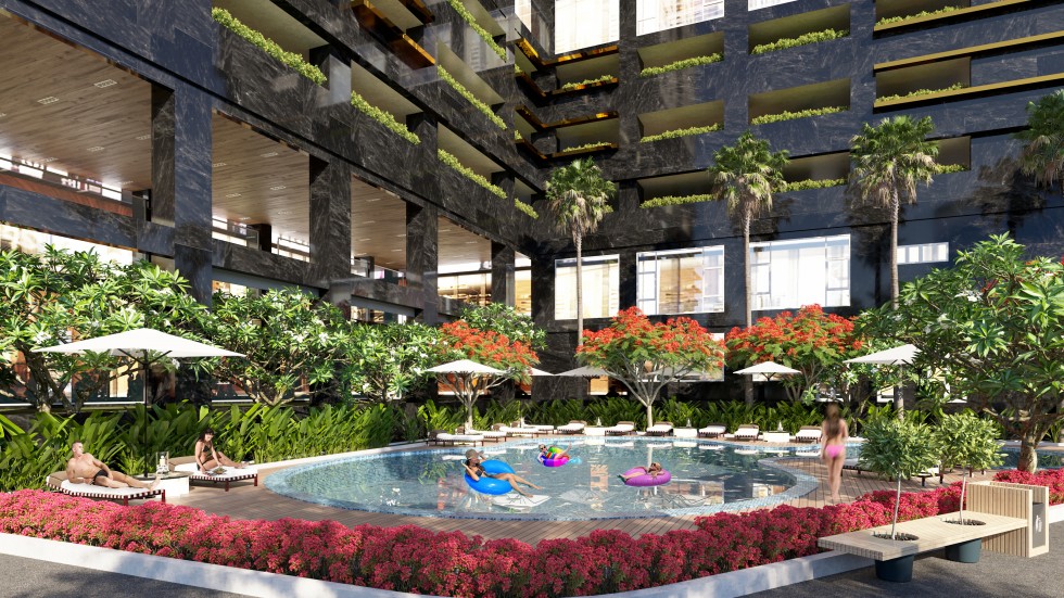 - Hồ bơi: Hồ bơi dành cho người lớn và trẻ em, ghế thư giản, khu giải trí ven hồ, cafe, phố đi bộ, tiểu cảnh.
