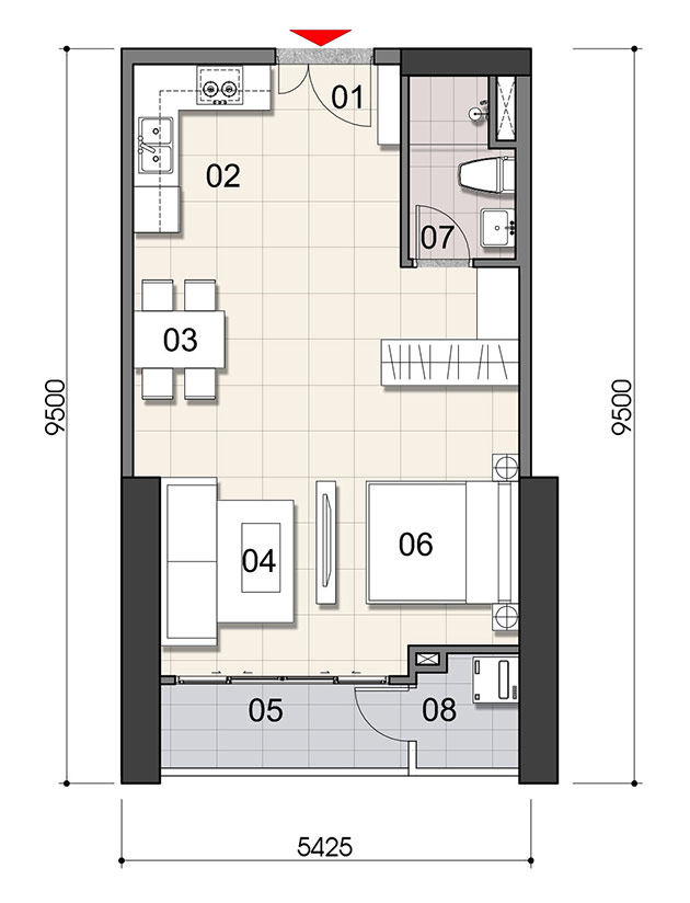 MẪU THIẾT KẾ 1 PHÒNG NGỦ