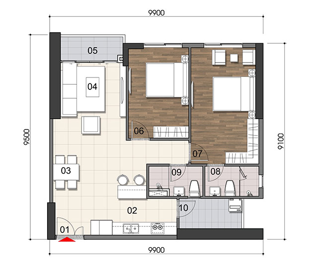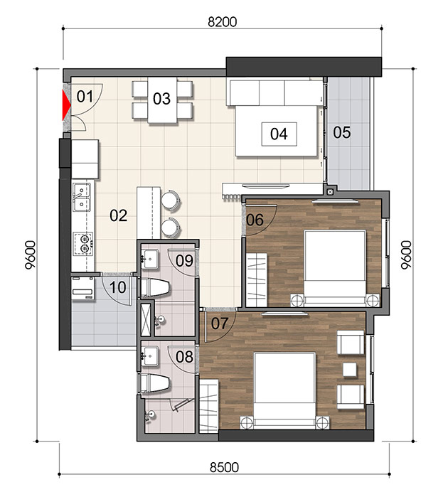 MẪU THIẾT KẾ CĂN HỘ 2 PHÒNG NGỦ