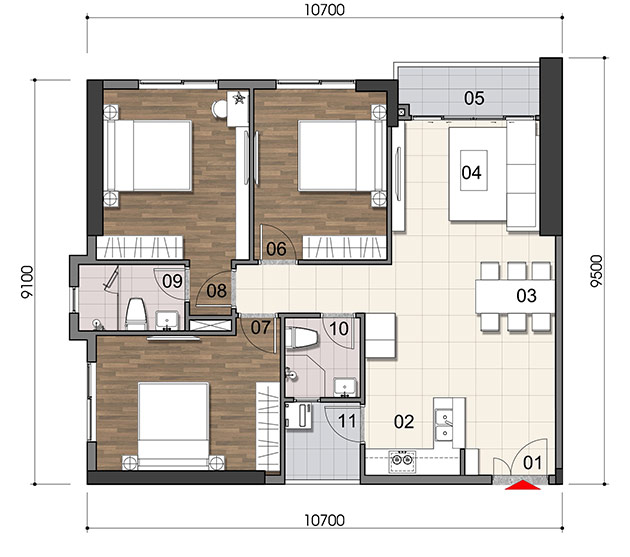 MẶT BẰNGCHI TIẾT CĂN HỘ 1,2,3 PHÒNG NGỦ